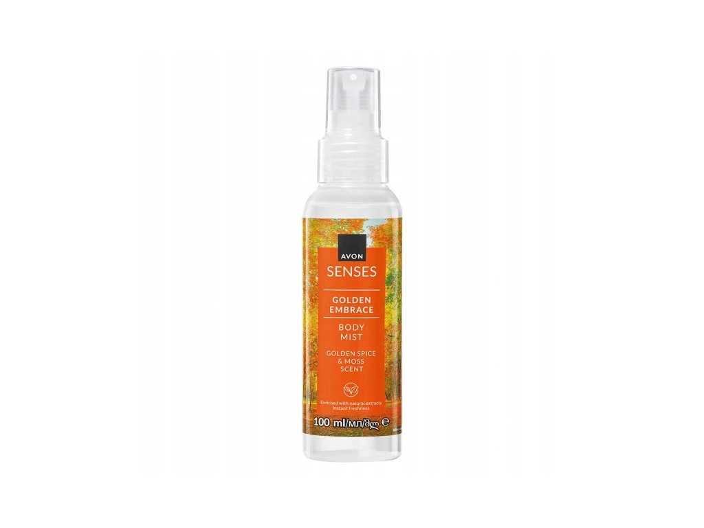 Avon Senses tělový sprej Golden Embrace s vůní zlatého koření a mechu 100ml