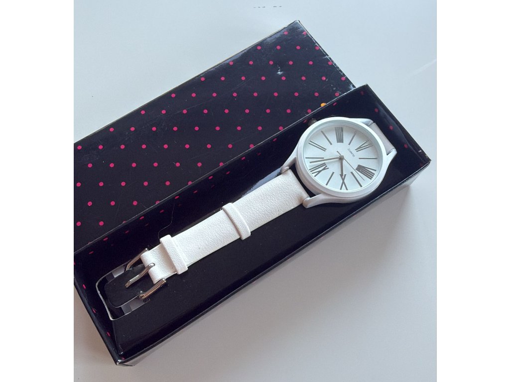 Avon bílé hodinky s koženkovým řemínkem